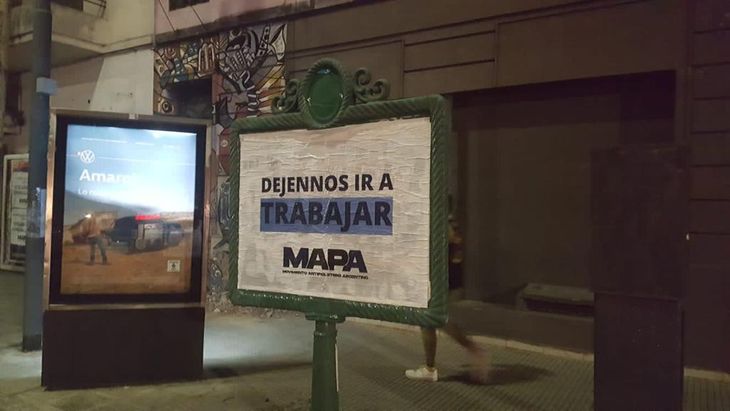 Los carteles contenían frases como "Déjennos trabajar" y "Cortar las calles es un delito. Este año se les termina la joda", con la firma y el logo del MAPA.