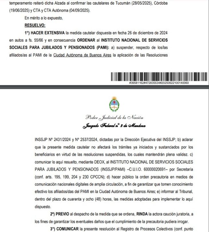 La resolución judicial, dictada el 22 de septiembre, ordena al Instituto Nacional de Servicios Sociales para Jubilados y Pensionados (PAMI) suspender la aplicación de las resoluciones que restringieron el programa “Vivir Mejor”. Asimismo, aclara que los trámites ya iniciados y las prestaciones vigentes seguirán teniendo validez, evitando así perjuicios adicionales a los beneficiarios.