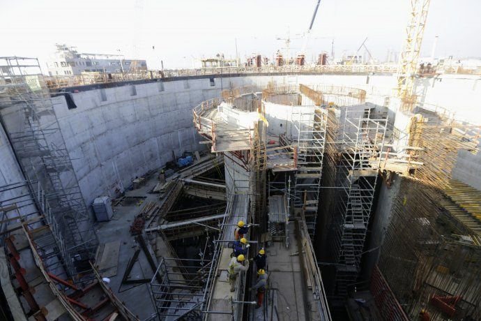 Las autoridades recorrieron las obras de la planta que se construye en el Puerto de Dock Sud para realizar el proceso de tratamiento físico de los efluentes cloacales provenientes de la red troncal que sirve a la Ciudad de Buenos Aires y parte del conurbano bonaerense.