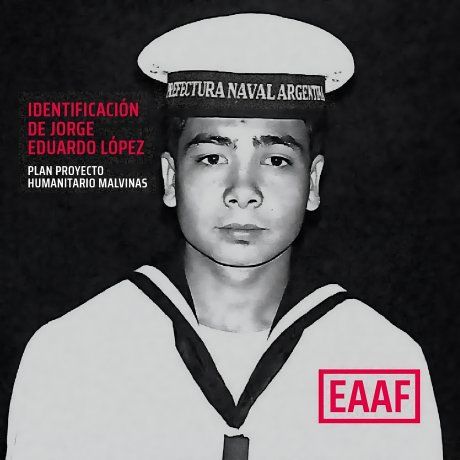 Se trata del cabo segundo de Prefectura, Jorge Eduardo López, quien murió el 10 de mayo de 1982. Fue enterrado sin identidad en el Cementerio de Darwin. El joven falleció en el bombardeo inglés al buque mercante Isla de los Estados cuando tenía 19 años.