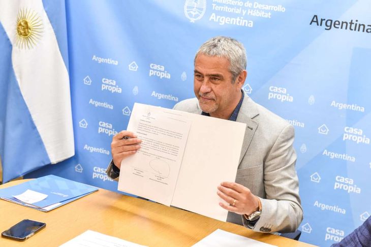 Con ese objetivo, Ferraresi y el intendente de Concarán, Facundo Domínguez, suscribieron un acuerdo por el cual se ejecutarán 60 lotes con servicios en dicha localidad, y juntos entregaron créditos Casa Propia para construcción, que cuentan con la fórmula de actualización Hog.Ar, que brinda mayor previsibilidad a los adjudicatarios y adjudicatarias al tener en cuenta la evolución de los salarios.