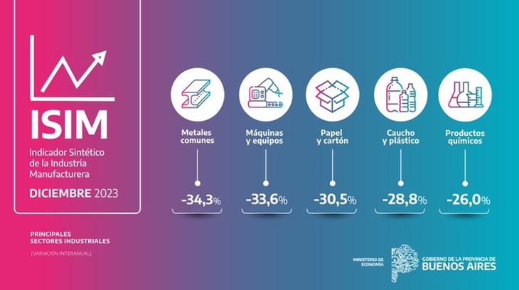 En una serie de publicaciones realizadas en la red social X, López agregó que "a pesar de la caída de diciembre, los niveles de actividad en 2023 de la industria bonaerense se situaron 11,2% por encima de los registrados en 2019, con mejoras en 8 de los 11 bloques industriales. Entre ellos, se destaca la producción de vehículos, textiles y minerales".