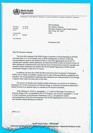 En los últimos dos meses, Cancillería emitió un comunicado a los estamentos de control e intervinientes en materia de políticas de cannabis medicinal, recordando a cada una de estas autoridades la comunicación enviada el 24 de enero de 2019 desde Naciones Unidas. La OMS, en esa ocasión, envió recomendaciones que plantean, entre otras cosas, lo siguiente: “Las pruebas presentadas al Comité no indicaban que la planta de cannabis y la resina de cannabis fueran particularmente propensas a producir efectos nocivos similares a otras sustancias en las listas IV de la Convención Única sobre Estupefacientes de 1961. Además las preparaciones de cannabis han demostrado potencial terapéutico para el tratamiento del dolor y otras afecciones médicas, como la epilepsia refractaria y la espasticidad asociadas con la esclerosis múltiple. De acuerdo con lo anterior, el cannabis y la resina de cannabis deben ser incluidos en una lista que prevea un nivel de control que evite el daño causado por el consumo de cannabis y, al mismo tiempo, no actúe como una barrera para el acceso y la investigación y el desarrollo de la preparación relacionada con el cannabis para uso médico”.