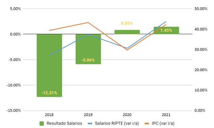 GRÁFICO N° 3: SALARIOS (RIPTE) VS. PRECIOS (IPC-INDEC) 2018-2021