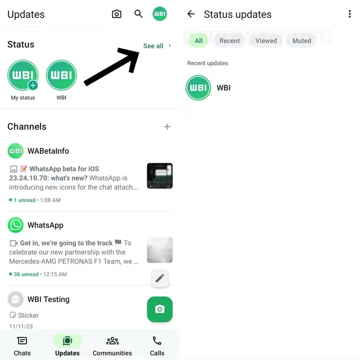 Además, WhatsApp pondrá filtros como "Todos", "Recientes", "Vistos" y "Silenciados". De esta manera el usuario podrá filtrar y solo aquellas historias que cumpla con alguna de estas condiciones.