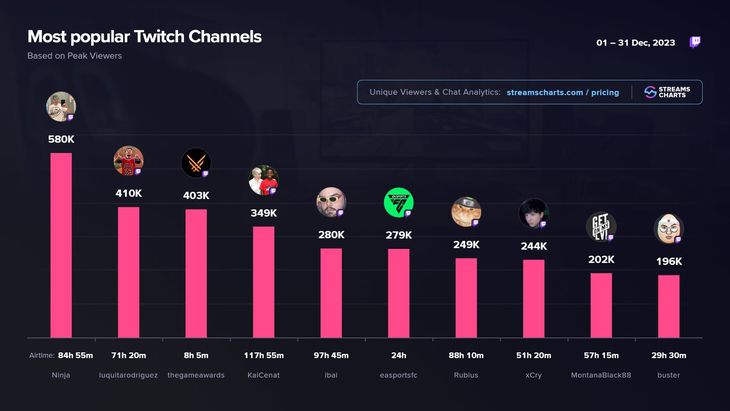 Ninja, cuyo nombre real es Richard Tyler Blevins, es el dueño del ranking, lo sigue el argentino, y en tercer lugar la gala de premios de thegameawards.