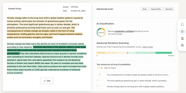 El sistema es accesible tanto desde navegadores como desde documentos en PDF o Word, lo que lo vuelve práctico para docentes o redactores que deben revisar grandes volúmenes de texto. Además, el informe generado por GPTZero incluye una línea temporal que simula el proceso de redacción y permite detectar cuándo un fragmento parece haber sido insertado por IA.
