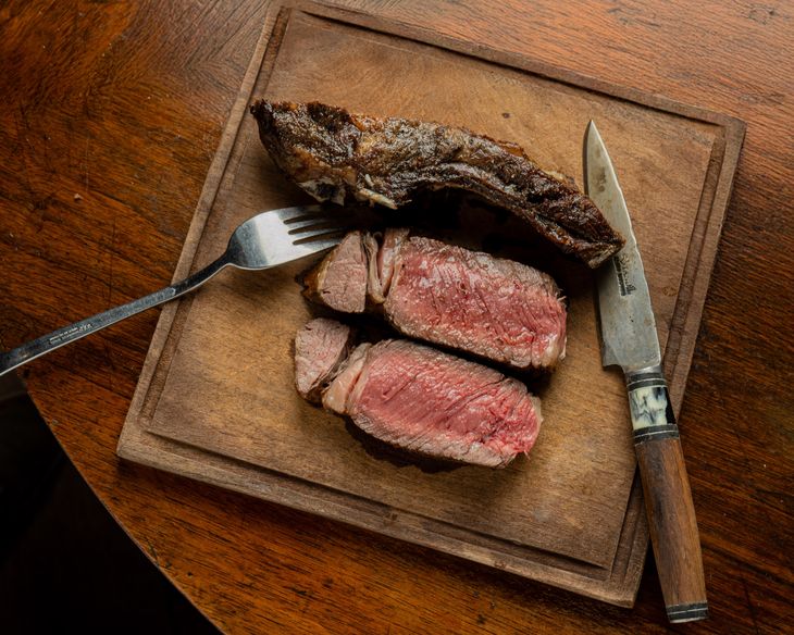 Liderado por el chef Gustavo Portela, Somos Asado propone una lectura actual de la parrilla argentina, con foco en carnes maduradas en seco —sello de la casa— y una cocina íntegramente a leña, donde el horno de barro ocupa un rol central. Recientemente, a la carta se sumaron carnes 100% orgánicas de pastura y cortes certificados de Angus y Wagyu, que amplían el abanico del menú junto a nuevos platitos de vegetales de estación y achuras reinterpretadas. Otra novedad es la ampliación de horarios, ahora, además de las cenas, la propuesta puede disfrutarse al mediodía, con almuerzos de martes a viernes desde las 12 h, una invitación para aprovechar su patio a cielo abierto, de impronta vintage y rodeado de plantas selváticas. En ese entorno relajado, la mesa se arma con cortes como el ojo de bife con hueso y el T-Bone (900 g, madurados por más de 40 días), además de piezas especiales como el Flat Iron de Wagyu argentino (400 g) y platitos creativos como el repollo asado con miso y crema de cajú o los dumplings de mollejas con ponzu.