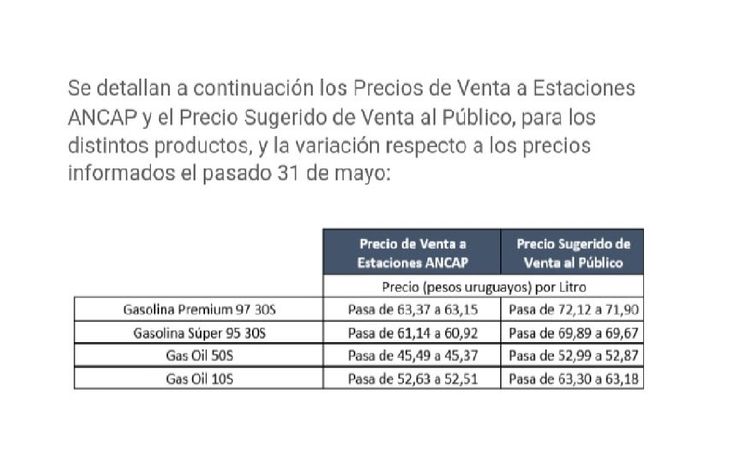 Los precios máximos de venta al público en las estaciones de servicio de Ancap son fijados mensualmente por el Ejecutivo, por ello Ducsa solo exhorta a las unidades de la petrolera estatal a trasladar la diferencia de la quita de la tasa de inflamables.
