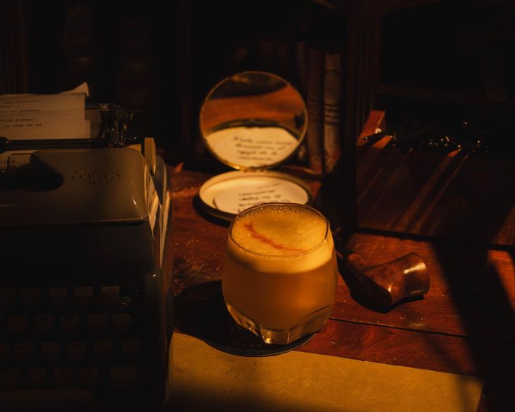 Ubicado en el primer piso del restaurante Puchero, The Book es un espacio escondido, al que se accede con clave secreta, obtenida al reservar online. La entrada es discreta, pero lo que espera al cruzar el telón es un universo cálido y envolvente: libros, máquinas de escribir, cámaras Polaroid, relojes antiguos y luces tenues que envuelven una barra con estantería literaria. Con solo 32 metros cuadrados y capacidad para 26 personas, es un salón pensado para el encuentro, la pausa y la conversación.