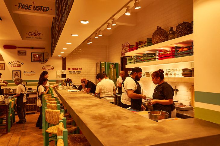 Un sello distintivo es la posibilidad de disfrutar de sus delicias directamente en la barra: en las dos primeras sucursales, se puede comer en la barra desde donde salen los pedidos, mientras que en la más nueva de Palermo, han incorporado un sector especial con una barra diseñada para ofrecer mayor comodidad. Estos espacios se distinguen por sus mesas altas y sillas de la misma altura de mimbre, que evocan la ambientación del Puerto del Callao, invitando a los comensales a vivir una experiencia dinámica, cercana e informal.
