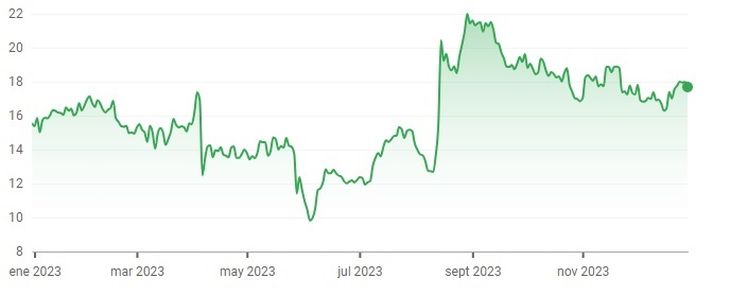 En cambio, el pico de su rendimiento lo tuvo el 30 de agosto, menos de tres meses después, cuando alcanzó su récord de 2023, con un precio de 22 dólares por acción en el Nasdaq de la Bolsa de Nueva York.