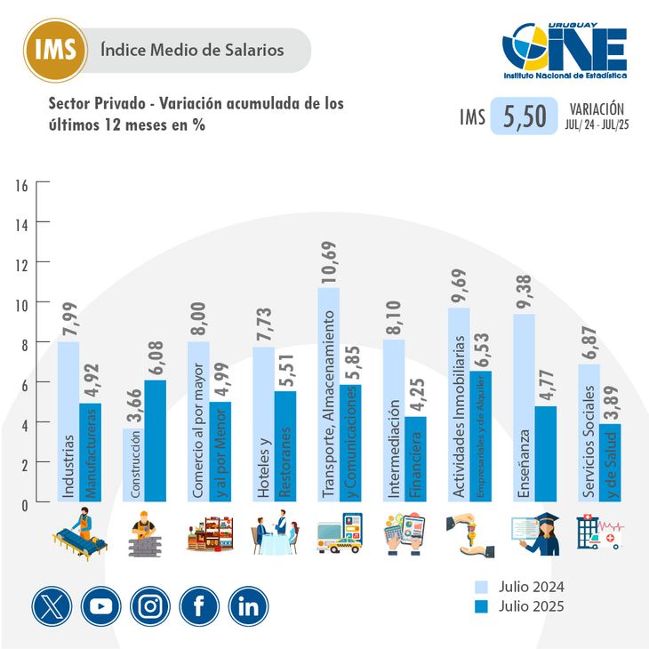 El salario real moderó su suba en julio, de acuerdo al último informe del Instituto Nacional de Estadística (INE), aunque el movimiento durante los últimos 12 meses sigue por encima de la inflación registrada durante el mismo período.