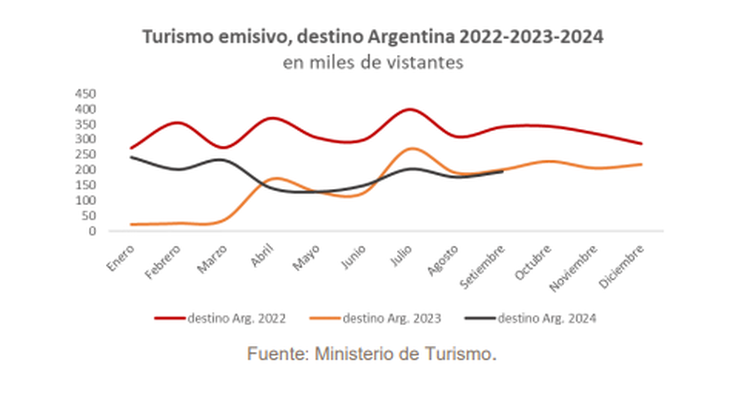 No obstante, se valió de cifras relevadas por el Ministerio de Turismo para señalar que durante los primeros ocho meses de este año se produjo una reversión de ese fenómeno, vinculada a la menor diferencia cambiaria.