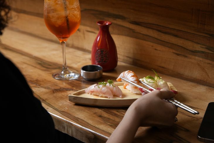 La ambientación recrea un entorno marítimo con colores claros, materiales naturales y una barra donde se observa el trabajo en tiempo real. La coctelería incorpora ingredientes latinoamericanos, como pisco, huacatay y maracuyá, acompañando cada paso del recorrido culinario.