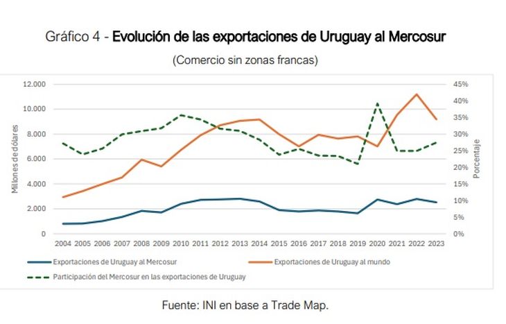 Un informe del INI-UCU reflejó que la participación de las exportaciones e importaciones con el bloque regional sugiere la necesidad de un enfoque diferente.