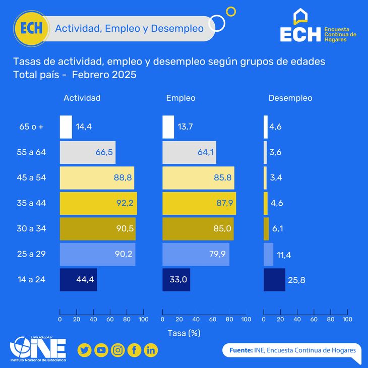 Este nivel de desempleo supone un incremento de 0,4 puntos porcentuales con respecto a los valores de enero y representa además el máximo de esta franja etaria desde setiembre, cuando estaba en 26,7%.