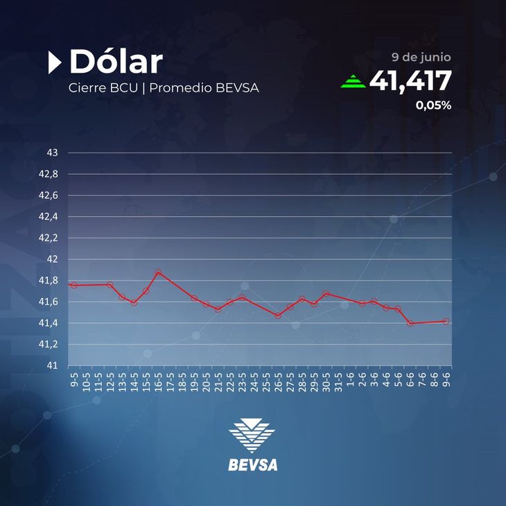 La cotización de cierre en la Bolsa Electrónica de Valores del Uruguay (Bevsa) fue de 41,400 pesos, mientras que el precio máximo fue de 41,450 pesos, y el mínimo de 41,400 pesos. Se realizaron un total de 49 transacciones, con un monto de operaciones por más de 25,5 millones de dólares. A su vez, hubo 6 operaciones de dólar OCT (26/12/2025) por 23 millones de dólares.