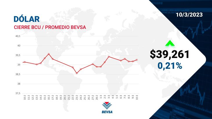El dólar aumentó un 0,21% respecto a ayer, y quedó en los 39,261 pesos, según la cotización oficial del interbancario del Banco Central del Uruguay (BCU). De todas formas, el repunte no alcanzó para revertir el saldo negativo de la última semana, en donde el tipo de cambio mostró una baja del 0,42%.