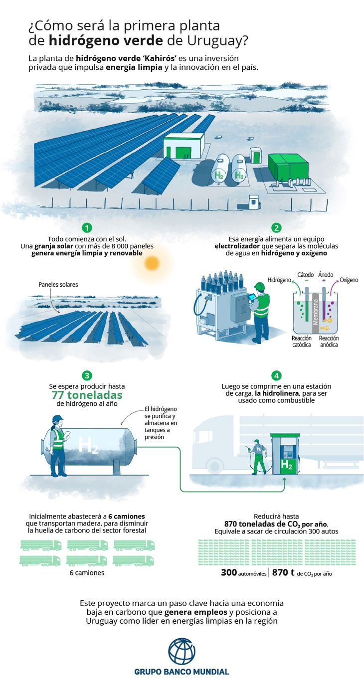 El Grupo Banco Mundial realizará su primera inversión en hidrógeno verde para desarrollar el proyecto Kahirós en Uruguay.