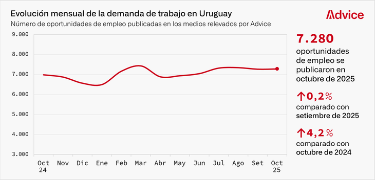 Esta moderación es atribuible, en parte, a la continuidad del escenario de estabilidad que se ha extendido durante el último año, y coincide con la evolución de los indicadores de actividad económica, que también reflejan una desaceleración en su crecimiento interanual. El informe realizado por Advice concluye que el mercado laboral uruguayo sostiene un nivel de dinamismo significativo, con un volumen de oportunidades que establece un nuevo estándar, aunque la tasa de expansión se esté normalizando.