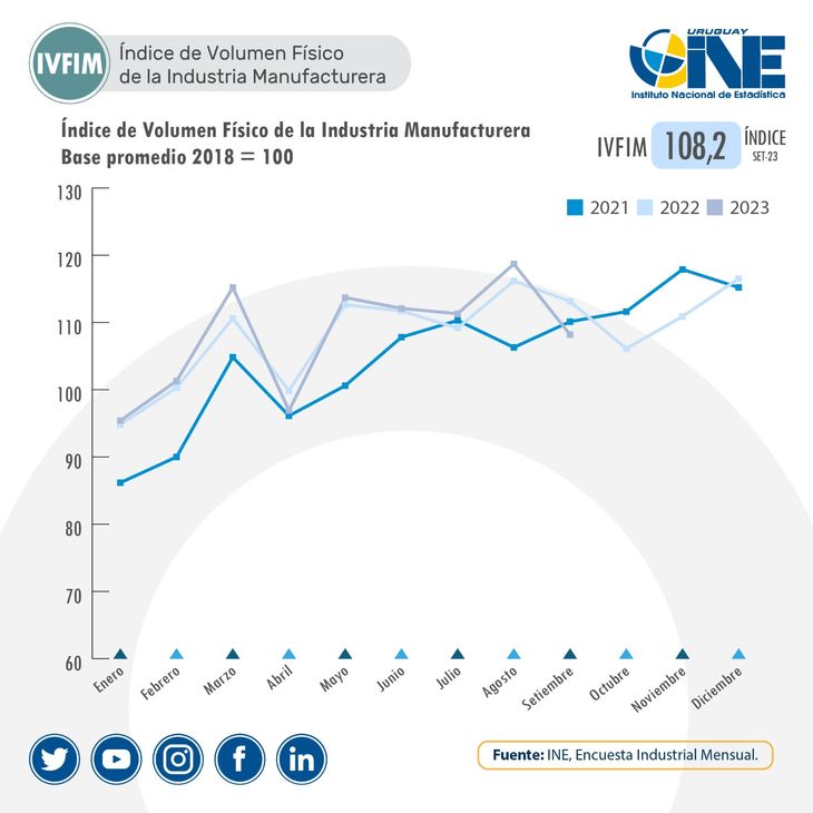 Además de la variación interanual negativa frente a setiembre de 2022, el Ivfim tuvo una variación promedio anual (en la comparativa enero-setiembre 2023 frente al mismo período de 2022) del 0,4%.