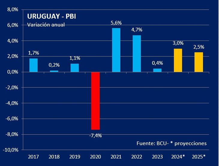 La economía uruguaya tiene varias fortalezas, entre ellas, su estabilidad institucional, grado inversor y oportunidades en la región y el mundo. Pero su crecimiento de mediano plazo es escaso y las cuentas públicas no cierran.