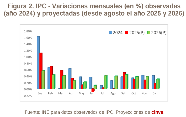 Para octubre, el Cinve prevé que la variación en los precios se ubique en 0,30% mensual —apenas una centésimas por debajo del registro del mismo mes en 2024, que fue del 0,33%—, mientras que el crecimiento interanual esperado podría ubicarse en 4,4% —medio punto debajo de la cifra del año pasado, que se ubicó en 5,1%—; una leve suba que, igualmente, mantendría el guarismo por debajo del objetivo de política monetaria actual.
