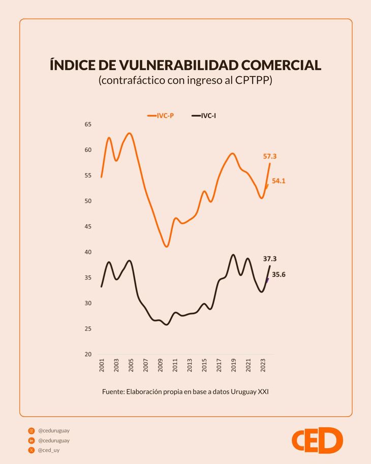 El CED cerró su análisis con un dato estructural: el ingreso al acuerdo reduciría la vulnerabilidad comercial del país a niveles históricamente bajos y ampliaría la participación de Uruguay en cadenas globales de valor. En su visión, la diversificación de destinos, el acceso a un mercado ampliado y la profundización de reglas previsibles ubican al CPTPP como el mayor salto de apertura desde la creación del Mercosur.