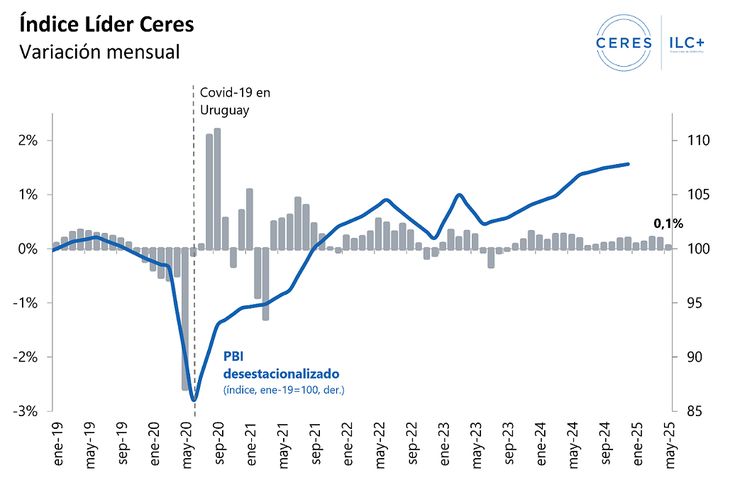 El Índice Líder Ceres (ILC), el indicador adelantado del nivel de actividad que elabora el Centro de Estudios de la Realidad Económica y Social (Ceres), registró que la actividad económica creció un 0,1% durante el pasado mes de mayo.