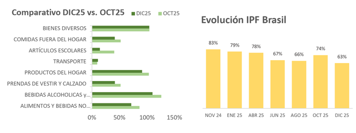 Bebidas alcohólicas y cigarrillos, en cambio, registró la mayor diferencia en la medición comparativa del indicador, con una brecha del 110%. De todos modos, la misma se redujo desde el 126% previo e, incluso, alcanzó su menor nivel en más de un año, alejándose todavía más del máximo de 174% de noviembre de 2024.