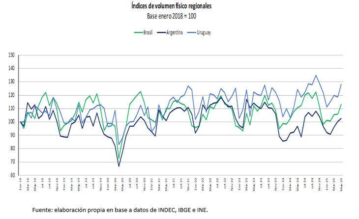 A nivel acumulado, en los primeros cinco meses de 2025, la industria manufacturera exhibe un crecimiento del 7,4%, el doble que la Argentina (3,7%) y ampliamente por encima de Brasil (1,6%). Al comparar con el acumulado a mayo de 2019, el crecimiento alcanza el 13,8%, reflejando una recuperación sostenida tras los efectos de la pandemia.