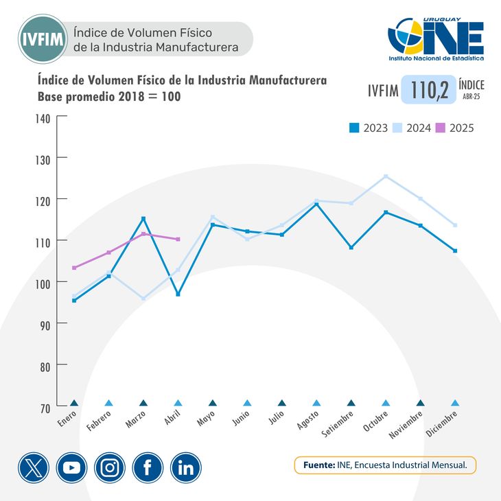 Los datos surgen del Índice de Volumen Físico de la Industria Manufacturera (Ivfim), que se mostró al alza, a pesar de la caída del núcleo manufacturero, que cayó un 1,6%, tras un fuerte aumento el mes pasado.