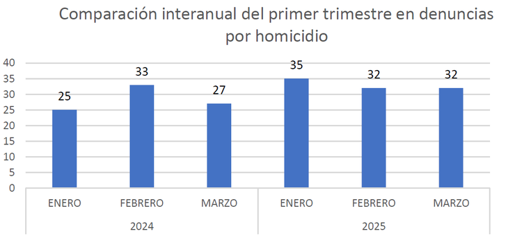 Los últimos datos del Ministerio del Interior (MI), estiman que durante los primeros tres meses del año las denuncias por homicidio fueron un total de 99 frente a las 86 del mismo período en 2024, según datos procesados por Ámbito.
