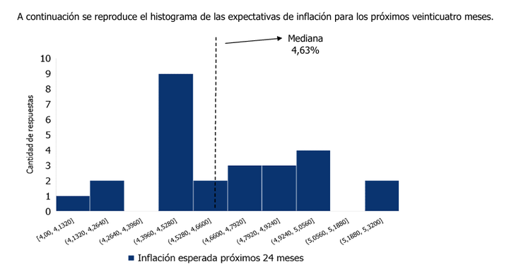 Sin embargo, a 12 meses, la inflación esperada sube al entorno del 4,6%, y para 2026 y 2027 las proyecciones se mantienen cerca del 4,5%–4,7%, con un aumento del desvío estándar, lo que refleja mayor dispersión entre analistas y menor anclaje de expectativas de largo plazo.