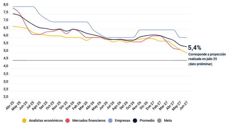 Algo similar ocurrió con los mercados financieros, que llegaron a pronosticar un IPC por encima del rango de tolerancia en los primeros dos meses del año y descendieron en mayo hasta el 5,2%.