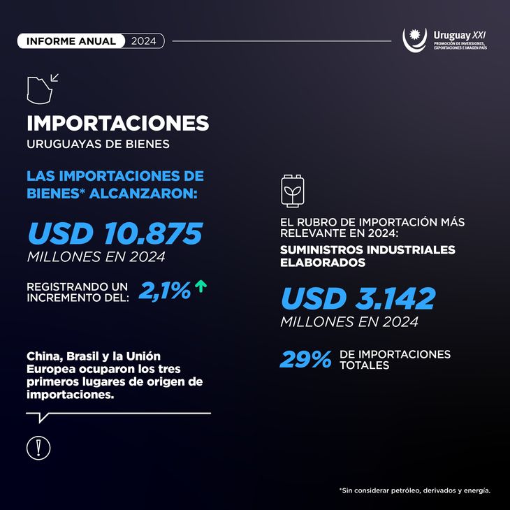 A su vez, China volvió a posicionarse otra vez como el mayor socio comercial del Uruguay, luego de que el 24% de las colocaciones nacionales tuvieran como destino al gigante asiático.