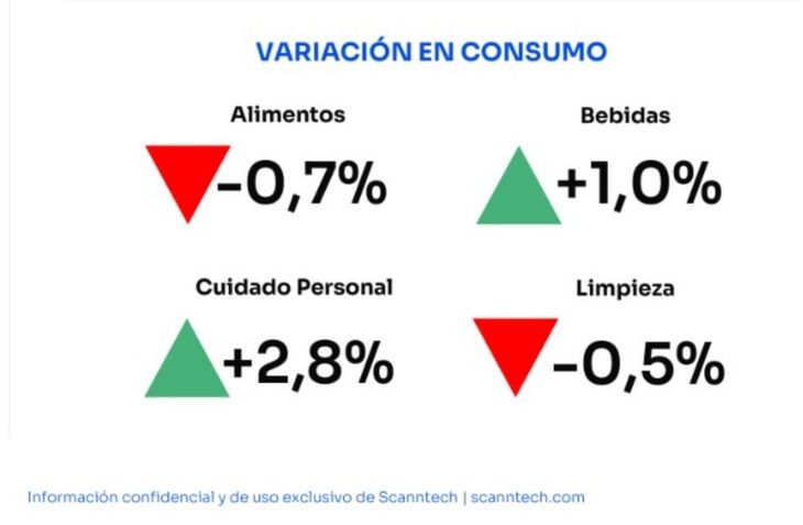 Por familia de productos, el informe identifica una evolución heterogénea, siendo el cuidado personal el que lidera el crecimiento en lo que va de 2025 con un incremento de 2,8%, seguido de Bebidas, que sube 1%.