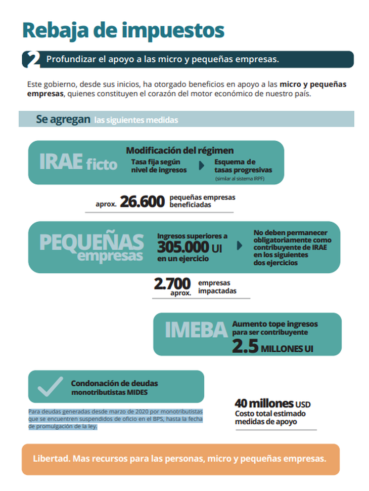 Además de la esperada rebaja del IRPF y IASS, el presidente Luis Lacalle Pou anunció un alivio fiscal para micro y pequeñas empresas del Uruguay. El gobierno ya envió al Parlamento el proyecto de ley para modificar el Impuesto a las Rentas de las Actividades Económicas (IRAE) ficto.