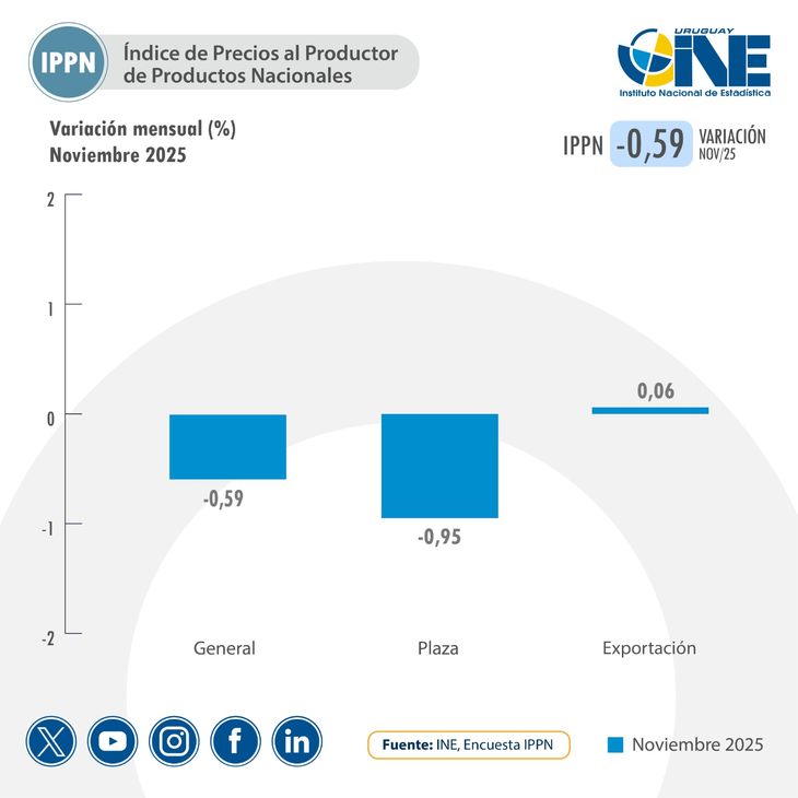 Los precios al productor registraron una nueva caída en noviembre, con un descenso mensual de 0,59% en el Índice de Precios al Productor de Productos Nacionales (IPPN), de acuerdo con el informe difundido por el Instituto Nacional de Estadística (INE).