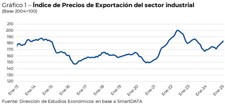 El Índice de Precios de Exportación (IPE) de bienes de la economía, medido en dólares, recogió un incremento del 1,4% con respecto a diciembre y una mejora que llega al 5,4% en la comparación interanual, aunque todavía se ubica lejos de los récords alcanzados a mediados de 2022.