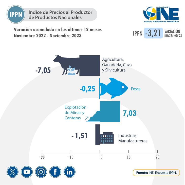 El IPPN, formulado por el Instituto Nacional de Estadística, también registró una variación mensual negativa durante noviembre.