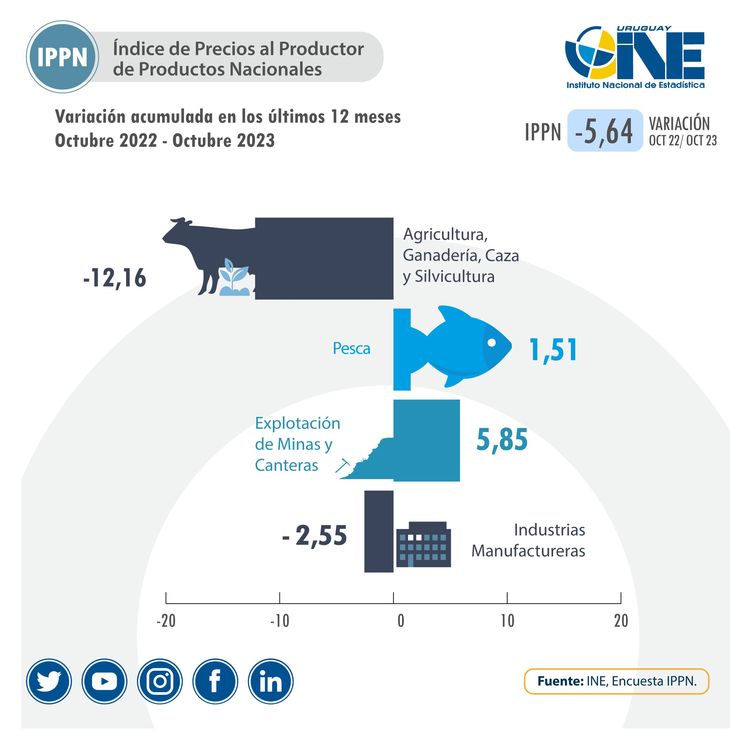 El Índice General del IPPN se estableció en 269,17 en octubre, cuando era fue de 285,26 en octubre del año pasado.