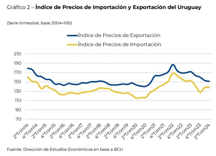 El informe, elaborado por la Dirección de Estudios Económicos de la CIU, indicó que esta merma se debe a que los precios de exportación retrocedieron un 11,9% con respecto a igual período de 2023, mientras que los de importación se redujeron un 9,2%.