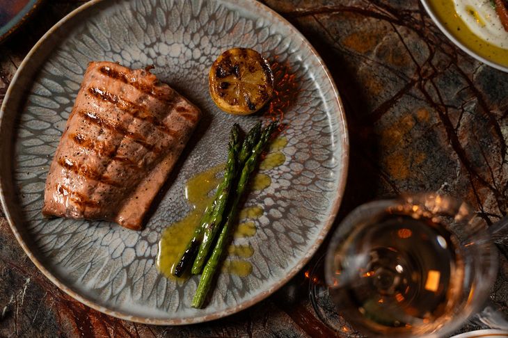 Las brasas ocupan un rol central con cortes como ojo de bife, bife de chorizo mariposa y matambrito de cerdo, junto a opciones como truchón patagónico o pechuga de pollo. La propuesta se completa con platos como milanesa de bife de chorizo, arroz español con langostinos, pastas y ensaladas frescas, en una carta que equilibra producto, técnica y accesibilidad.