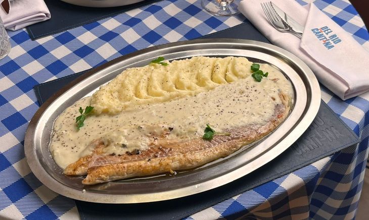 En Del Río Cantina, la cocina porteña se expresa a través de platos que forman parte del repertorio clásico y que hoy no abundan en las cartas. El recorrido puede empezar con el revuelto gramajo, servido como entrada y armado con panceta ahumada, pimientos asados, arvejas, huevos y papitas pay, en una versión fiel al espíritu original. Entre los principales, aparecen dos supremas que remiten a otra época del recetario local: la suiza, con papas noisette, y la Maryland, con papas rejilla. Completa la propuesta el lenguado al roquefort con puré de papas, un plato de cantina clásica que dialoga con una selección de vinos argentinos pensados para acompañar este tipo de cocina tradicional.