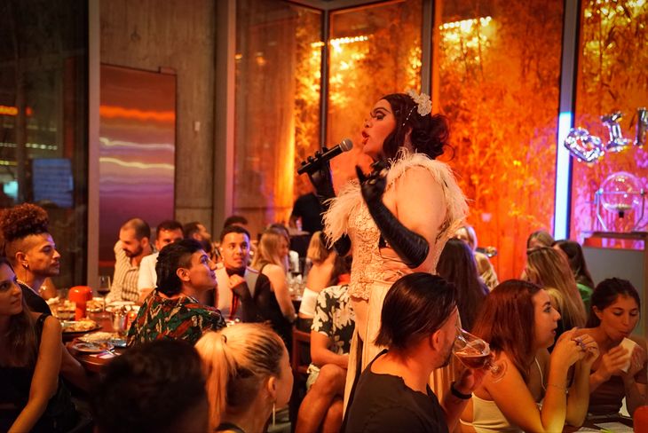 Desde las 22, el piso 11 cobra vida en Bestial Fly Bar, donde la noche se transforma en una verdadera fiesta con vista panorámica a la ciudad. La terraza se convierte en un escenario extravagante entre luces cambiantes y un clima de euforia, performers con trajes luminosos recorren el espacio desplegando coreografías que fusionan ritmos orientales, afro y latinos, mientras los DJ sets en vivo mantienen la energía en su punto máximo.