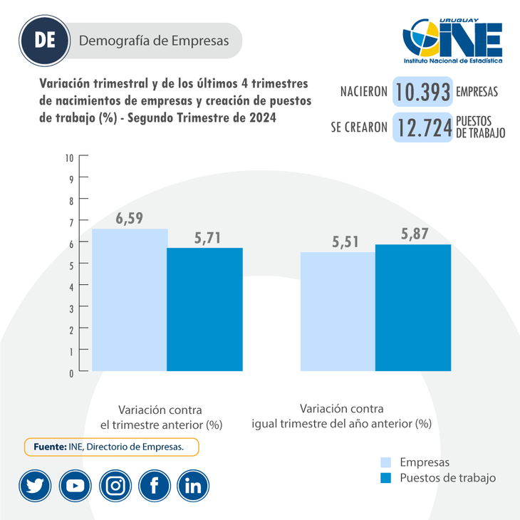 La cantidad de empresas activas se incrementó un 4,39% interanual, registrando un total de 191.907 en el segundo trimestre del año, de acuerdo al informe de demografía que elabora el INE, que mostró además una mejora del 0,78% con respecto al período enero-marzo.