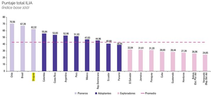 Según el último reporte del Índice Latinoamericano de Inteligencia Artificial (ILIA) que elabora el Centro Nacional de Inteligencia Artificial (CENIA) de Chile, Uruguay está entre los pioneros (gráfica). Entre los componentes del índice, tiene especial fortaleza en capital humano y gobernanza, pero no tanto en Investigación y Desarrollo. A su vez, el Índice de Preparación para la Inteligencia Artificial (AIPI) que elabora el FMI pone a Uruguay arriba, por su infraestructura tecnológica y recursos humanos.