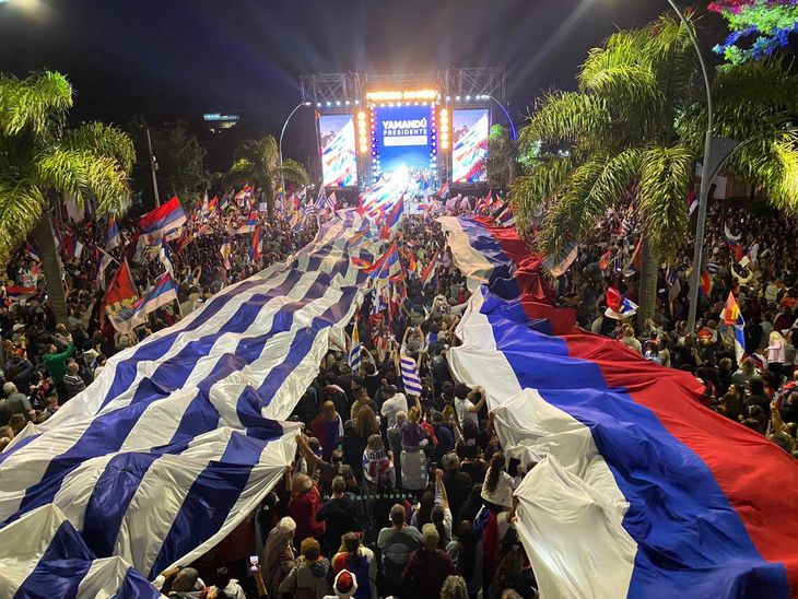 El candidato del Frente Amplio, Yamandú Orsi, encabeza el acto de cierre de campaña rumbo al balotaje 2024.